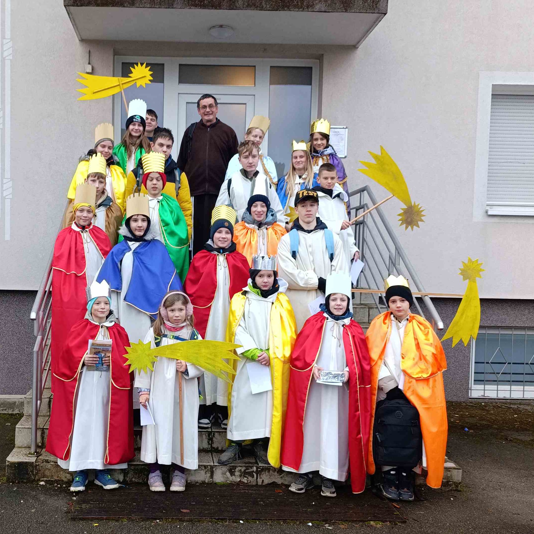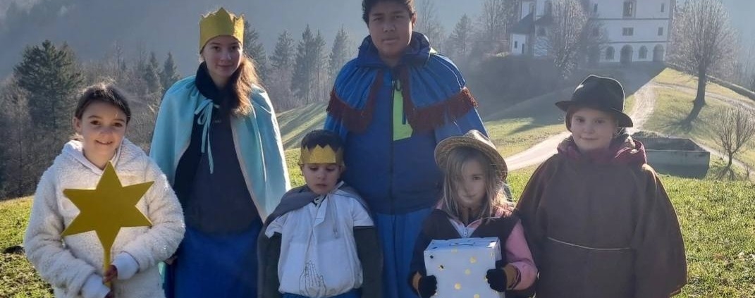 • ZAHVALA: Iskrena hvala vsem, ki ste sodelovali pri trikraljevski akciji. Pet skupin, ki je v soboto 3. januarja hodilo po župniji je zbralo 2.189 eur. Hvala za vaše darove, ki ste jih namenili za to akcijo. Kdor želi lahko za to akcijo svoj dar nameni preko spletne banke. Vse informacije najdete na tej spletni strani. (fotografija: letošnji koledniki v naši župniji)
